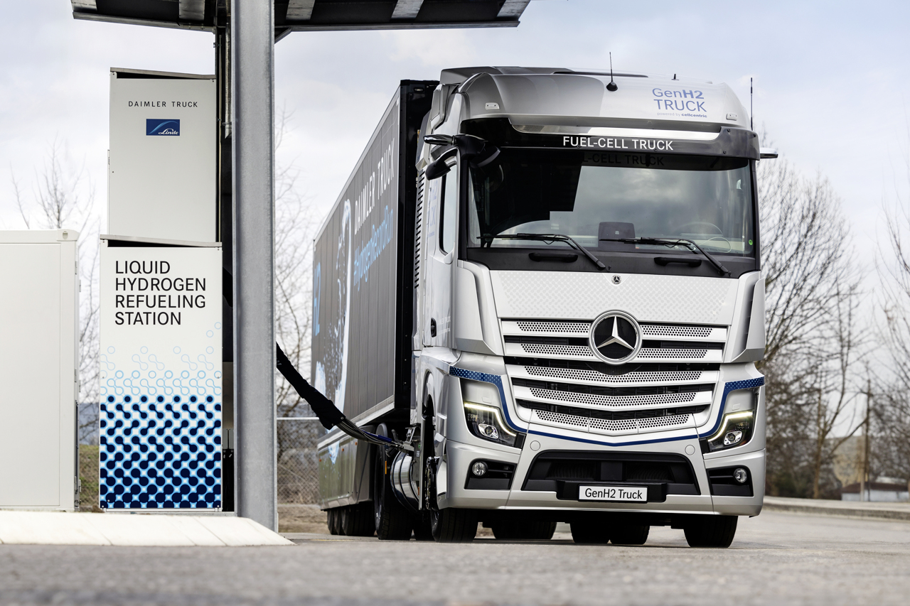 Daimler Truck, Linde Engineering ile birlikte geliştirdikleri yeni sLH2 soğutulmuş sıvı hidrojen yakıt dolumu teknolojisini tanıttı. Bu teknoloji, daha yüksek depolama yoğunluğu, daha uzun menzil, daha hızlı yakıt dolumu, daha düşük maliyet sunuyor.