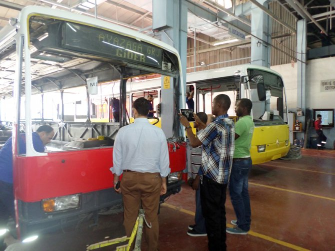 Liberya’dan gelen 10 kişilik teknik heyete mühendis ve teknik personel tarafından uygulamalı ve teorik eğitimler verildi. Otobüslerin tamir ve bakımı, filo yönetimi, elektrik -mekanik sistem ve arıza tespiti gibi konularda bilgilendirmeler yapıldı.