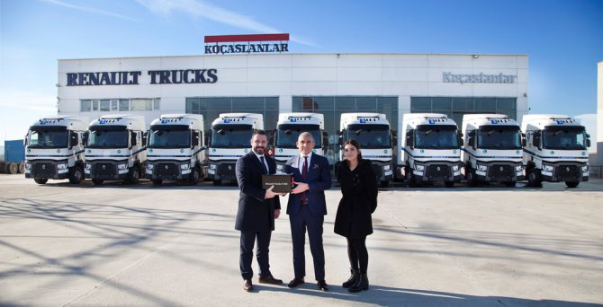 ITT Lojistik’in yeni araçları Renault Trucks Koçaslanlar Orhanlı Şubesi’nde ITT Lojistik Kurucu Başkanı Tekin Öztanık, Genel Müdürü Didem Öztanık, Renault Trucks Pazarlama Direktörü Şebnem Uygurtürk ve Koçaslanlar Otomotiv Orhanlı Müdürü Erdoğan Seymen’in katılımlarıyla teslim edildi. Tekin Öztanık teslimat sırasında yaptığı açıklamada; “2012 yılından bu yana Renault Trucks çekicileri kullanıyoruz. Yakıt verimliliğinden oldukça memnunuz. Bakım-onarım konusunda ise hem yurtiçi hem yurtdışındaki geniş ve donanımlı servis ağı sayesinde hiç sorunsuz, zaman kaybetmeden yolumuza devam ediyoruz” diye belirtti.