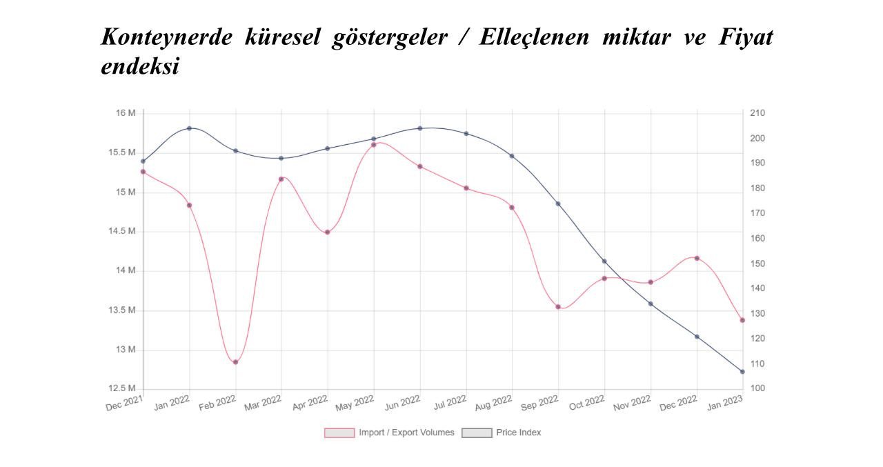Aydın Erdemir, küresel ekonomideki daralmanın konteyner taşımacılığına etkilerini ve bu alanda 2023 beklentilerini açıkladı. Erdemir, “Hem elleçlenen konteyner adeti ve hem de fiyat endeksi 2022 yılına göre düşmeye devam ederken konteyner firmalarının pandemiyle birlikte elde ettikleri rekor karlarda da yüzde 80 oranında düşüş bekleniyor. Elleçlenen konteyner adedinde küresel ölçekte 2023 yılında yüzde 2,5 oranında bir düşüş yaşanacağı öngörülüyor. Bu durum zaten 2023 yılının ilk aylarıyla birlikte Türkiye’ye yandı. Fakat Karadeniz’de yaşanan ve uzun süreceği beklenen Rusya-Ukrayna çatışması özellikle bu bölgenin transit yüklerde Türkiye için önemini de gösterdi” ifadelerini kullandı.