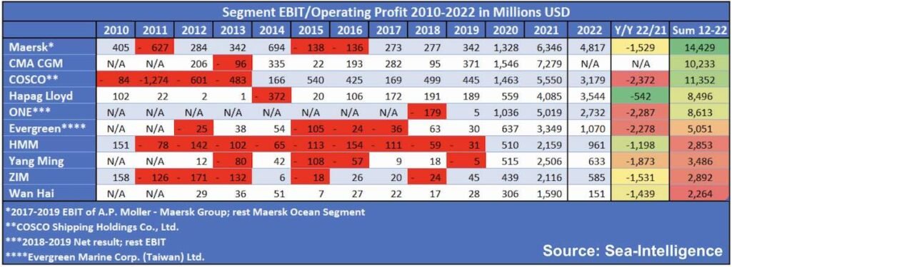 Sea-Intelligence tarafından yapılan analize göre, üç yılda - 2020, 2021 ve 2022 - yapılan EBIT, konteyner taşımacılığının önceki 63 yıllık tarihinin birleşik kârından daha fazla.