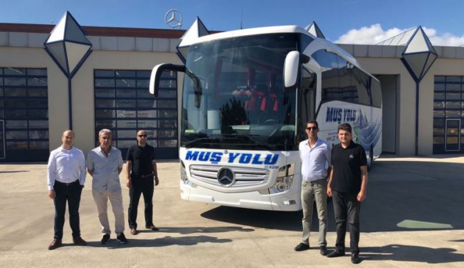 Mercedes-Benz Türk bayii Hassoy tarafından Muş Yolu Turizm’e satışı gerçekleştirilen 1 adet Mercedes-Benz Travego 15 SHD, Mazhar Özkan’a teslim edildi. Muş Yolu Turizm yetkilileri, filolarını Mercedes-Benz otobüsleri ile güçlendirmenin verdiği gururu dile getirdiler. Travego otobüslerinin yolculara verdiği yüksek konfor ve sağladığı güven duygusu sektör tarafından tarafından takdir edilmeye devam ediyor. Teslimat sırasında, yetkililer kullanmakta oldukları Travego otobüslerden çok memnun olduklarını belirtip; Mercedes-Benz otobüslerinin düşük yakıt sarfiyatına ve yüksek ikinci el fiyatına vurgu yaptılar.