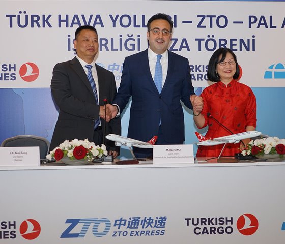 İstanbul Yeni Havalimanı’nın açılışı öncesi, “global ekspres taşımacılık” sektöründe taşları yerinden oynatacak; sadece Türkiye’de değil, dünyada da geniş yankı uyandıracak bu ortaklık, Türk Hava Yolları Yönetim Kurulu ve İcra Komitesi Başkanı M. İlker Aycı, ZTO Express Başkanı Mei Song Lai ve PAL Air Ltd.’nin Yönetim Kurulu Başkan Vekili Vivian Lau tarafından imza altına alındı.