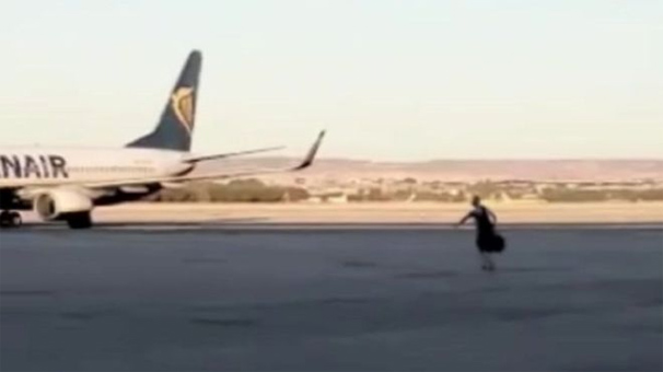 Geç kaldığı uçağı aprona atlayarak yakaladı. İşte o anlar