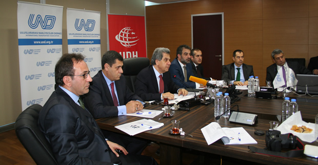Uluslararası Nakliyeciler Derneği (UND) İstanbul Ulaştırma Denizcilik ve Haberleşme Bakanlığı 1. Bölge Müdürlüğü binasında bugün gerçekleştirdiği basın toplantısında 2013 yılını değerlendirerek 2014 hedeflerini ortaya koydu. Toplantıya UND Başkanı Çetin Nuhoğlu’nun yanı sıra Yönetim Kurulu Üyeleri; Murat Baykara, Hakan Keleş, Cavit Değirmenci, Şerafettin Aras, Ali Çiçekli ve İcra Kurulu Başkanı Fatih Şener katıldı.