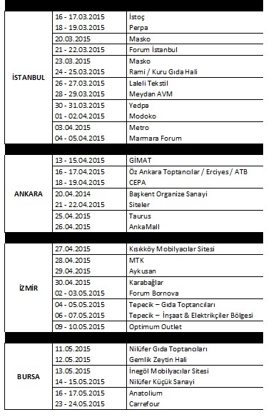 Mercedes-Benz Türk, 16 Mart – 24 Mayıs 2015 tarihleri arasında yeni Vito’yu ve 300’ün üzerinde farklı sektörde kullanılabilecek Yeni Sprinter Eco Panelvan’ı İstanbul, Ankara, İzmir ve Bursa şehirlerinde yakından tanıtacak.