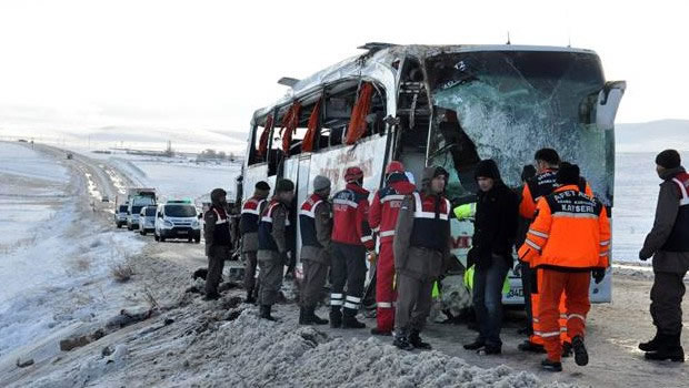 Kayseri'nin Pınarbaşı İlçesi'nin Olukkaya Mevkii'nde İstanbul'dan Muş'a giden bir yolcu otobüsü devrildi. Kazada 13’ü erkek, 7’si kadın, biri çocuk 21 kişi öldü. Yolcuların camdan dışarı fırladığı ve otobüsün üzerlerine düştüğü feci kazada 7’i ağır 29 kişi de yaralandı.