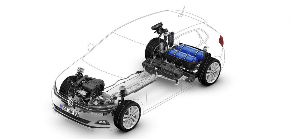 İşte ikiz kardeşlerden Volkswagen Polo, arka tekerlerin ortasında gözüken mavi tüpler ise CNG’nin depolandığı depolar.
