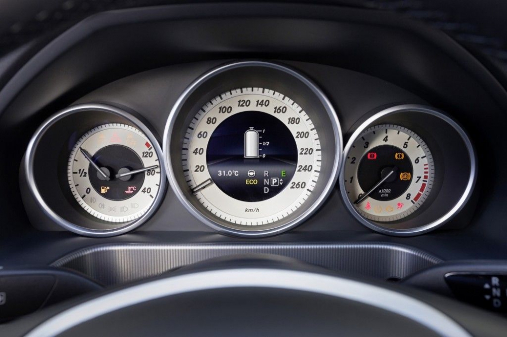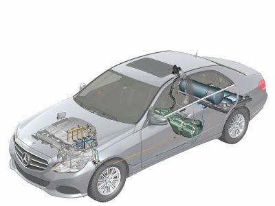 Bir Mercedes’i CNG ile hayal edebiliyor musunuz? Arkadaki şeması çizilmiş tüplerde 19.5 KG doğalgazı (121,5 Litre) saklayabilen E Serisi, bu yakıtile tam 400 KM gidebiliyor.