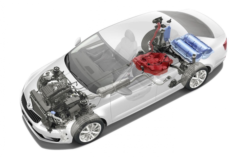 Skoda Octavia G-TEC, 1.4 TSI motora ek olarak CNG yakıt tankları ile müşterilere sunulmakta.